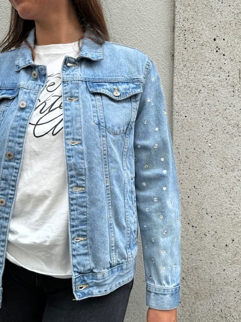 Giacca in Jeans con strass sulla manica